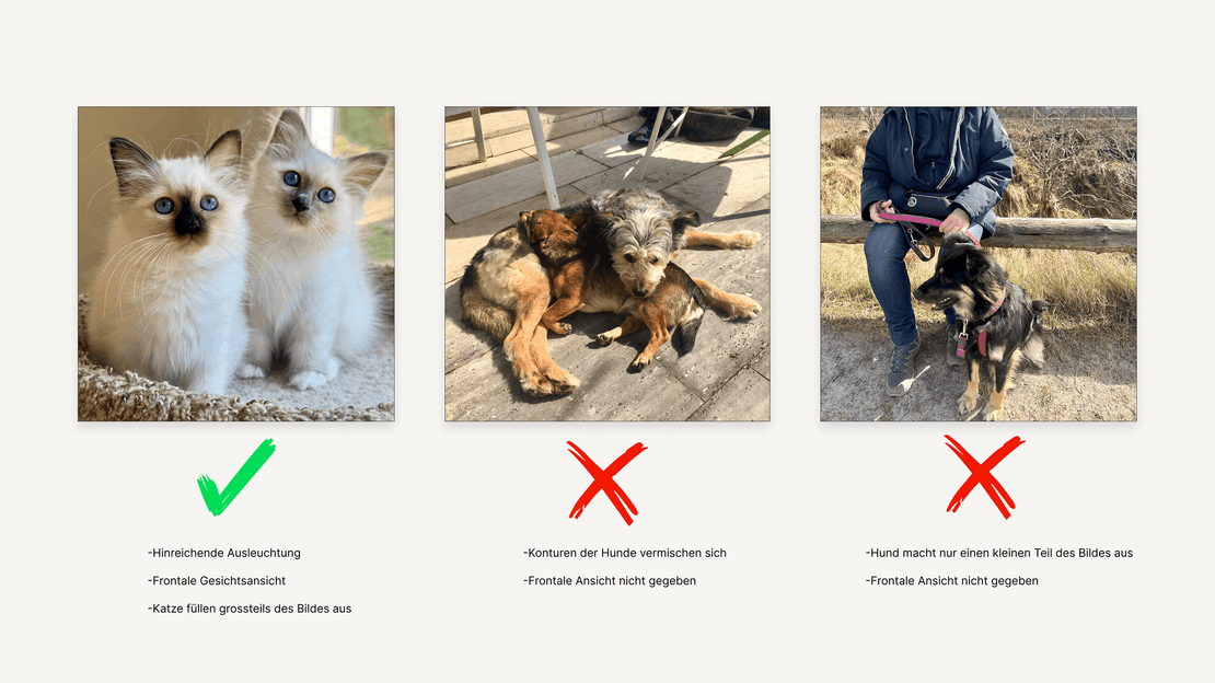 Vermeide stark gefilterte Bilder, damit wir die natürlichen Farben deines Haustiers korrekt erfassen können.